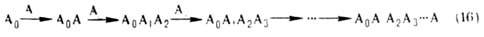 Др. путь повышения общего выхода - использование т. наз. конвергентных схем синтеза. При традиц. подходе сборка сложной молекулы из фрагментов Аi осуществляется путем последоват. усложнения исходного субстрата в соответствии с "линейной" схемой (16):