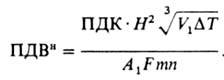 В этих ф-лах Я высота дымовой трубы, м; V1 - объем газовоздушной смеси за время