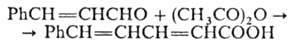 Винилог бензальдегида (коричный альдегид) реагирует с уксусным ангидридом с образованием b-стирилакриловой к-ты:
