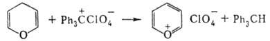Каталитич. гидрирование g-пирана приводит к тетрагидро-пирану; взаимод. с трифенилметилперхлоратом к перхлорату пирилия:
