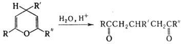 При гидролизе в кислой среде g-пираны легко раскрывают цикл с образованием 1,5-дикетонов: