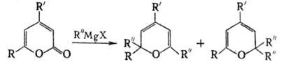 Замещенные a-пираны получают гл. обр. взаимод. a-пиронов с магнийорг. соед., напр.: