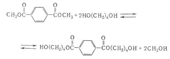 бис-(4-Гидроксибутил)терефталат получают этерифика-цией терефталевой к-ты или переэтерификацией диметилте-рефталата (этот метод преобладает в пром-сти) 1,4-бутилен-гликолем по схеме: