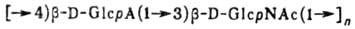Гиалуроновая к-та, глюкозаминоглюкуроногликан; 2-ацет-амидо-2-дезокси-b-D-глюкопирано-b-D-глюкопирануроно-гликан [Ас = СН3С(О)]