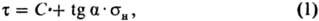 Структурно-реологические свойства. Наряду с развитой межфазной пов-стью, обусловливающей мн. св-ва порошков как высокодисперсных систем, важнейшее значение имеют структурно-реологич. св-ва: способность к необратимым сдвиговым деформациям (течению), образование обратимо разрушаемых контактов между частицами (структурирование) и др. Осн. реологич. характеристики порошков-предельное напряжение сдвига и эффективная вязкость. В рамках механики сплошных сред, начиная с работы К. Кулона (1773) до 2-й пол. 20 в., порошки рассматривались как пластич. тела и на основе теории пластичности были сформулированы условия мех. деформации порошков. В частности, сдвиговая деформация порошков наступает при предельном напряжении сдвига т, обусловленном двумя факторами: притяжением частиц порошков друг к другу (аутогезией) и трением между частицами порошков (обычно наз. внутренним трением, но не связанным с диссипацией энергии деформирования). Согласно условию Мора-Кулона,