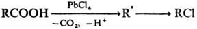 Окисление и восстановление свободных радикалов. Наиб. известно одноэлектронное окисление С-центрированных радикалов солями Сu(II), Co(III), Mn(III), Fe(III), Pb(IV), Се (IV). Р-ция осуществляется с высокими скоростями с переносом лиганда (С1, Вг, CN и др.), напр.:
