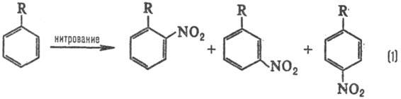Электронодонорные заместители [R=СН3, ОСН3, N(CH3)2] стимулируют образование орто- и пара-продук-тов, а электроноакцепторные (R = СООН, SO3H, NO2)-мета-продуктов, причем в первом случае р-ция идет легче, чем с незамещенным бензолом (R = Н), а во втором-труднее. Эти закономерности наз. правилами ориентации в ароматическом ряду. При нуклеоф. замещении правила ориентации обращаются.
