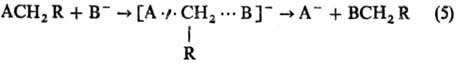 (В и А-радикалы или анионы; А···H···В-делокализован-ная структура переходного состояния) и р-ции нуклеоф. замещения SN2: