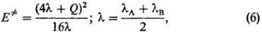 где lА и lB-параметры, наз. "внутренними барьерами" реагентов А и В. Ур-ние (6) предполагает нелинейную (квадратичную) зависимость между Е. и Q. Однако во мн. случаях (особенно для ионно-молекулярных реакций в полярном р-рителе) корреляции становятся прямолинейными (рис. 5), т.е. маркусова кривизна брёнстедовских графиков исчезает.