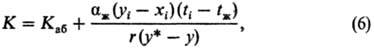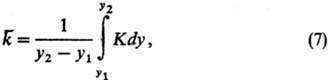 где Каб = (1/bу + m/bх)-коэф. массопередачи, вычисляемый по ур-ниям физ. абсорбции; bу, bх-коэф. массоотдачи в паровой и жидкой фазах; m-наклон линии равновесия; aж-коэф. теплоотдачи при конденсации пара; r-теплота испарения; xi, yi-концентрации ЛЛК на границе раздела фаз; ti, tж-т-ры на границе раздела и в ядре потока жидкости. Средний коэф. массопередачи в пределах изменения концентраций в колонне от y1 до у2 рассчитывают по ур-нию: