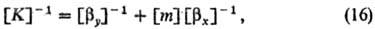 где [m]-матрица угловых коэф. касательных к равновесной линии для многокомпонентной смеси; [by], [bx]-матрицы коэф. массоотдачи для паровой и жидкой фаз. Матрицу [К] можно использовать далее для решения ур-ния (14).
