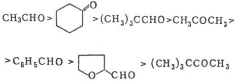 Это свидетельствует о влиянии на скорость р-ции как полярных, так и стерич. факторов. Скорость гидролиза семикарбазонов изменяется в др. последовательности, что дает возможность путем быстрой обработки смеси карбонильных соед. се-микарбазидом выделять семикарбазон наиб. активного карбонильного соед., а при длит. процессе-семикарбазон, более устойчивый к гидролизу.