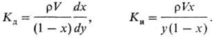 Количеств. характеристикой соосаждения служит степень соосаждения х, равная отношению массы микрокомпонента, перешедшего в твердую фазу, к массе микрокомпонента в исходной среде. Степень соосаждения характеризуют через дифференциальный (Кд) или интегральный (Ки) коэффициент соосаждения, причем первый характеризует степень перехода микрокомпонента из исходной среды в элемент слоя твердой фазы, а второй-в весь объем твердой фазы. Если у и r-соотв. масса и плотность осадка, V- объем среды, то Кд и Ки соотв. выражаются соотношениями: