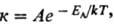 где EA-энергия активации, A-предэкспоненциальный множитель (см. Аррениуса уравнение, Константа скорости, Энергия активации).