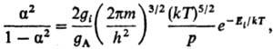 где Ei-энергия ионизации атома, m-масса электрона; gi, gА-статистич. веса ионов и атомов (ур-ние Саха).
