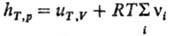 газофазная р-ция протекает с изменением числа молей, то hT,p . uT,V. Для конденсир. фаз в силу малости производной (9V/9V)T,р разность hT,p — uT,V мала и ею обычно пренебрегают. На практике обычно приходится иметь дело с изобарич. условиями (р = = const), когда тепловой эффект реакции совпадает с изменением энтальпии системы. Поэтому вместо термина "тепловой эффект реакции" используют термин "энтальпия р-ции". Тепловые эффекты hT,p, uT,V в общем случае зависят от состава системы, т. к. величины ui, hi изменяются по мере протекания р-ции.
