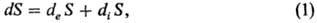 О, где знак равенства относится к состоянию равновесия или к случаю обратимых (квазистатич.) процессов. Величина diS играет центр. роль в термодинамике необратимых процессов.