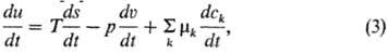 где Т-абс. т-ра, mk, сk-хим. потенциал и массовая доля k-го компонента. Ур-ние (3) соответствует фундам. ур-нию Гиб-бса (см. Внутренняя энергия).