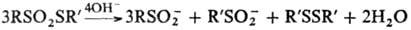 При гидролизе тиолсульфонатов в присут. оснований образуются соли сульфиновых к-т и дисульфиды: