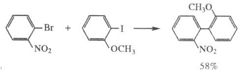 При получении несимметричных диарилов наилучшие выходы достигаются, когда один из арилгалогенидов активирован, а второй относительно малореакционноспособен, напр.: