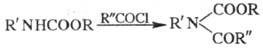 R'NHCOX + ROH; при наличии легко уходящей группы р-ция может идти по механизму отщепления - присоединения: R'NHCOOAr