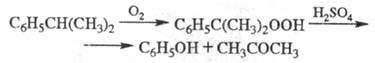 В пром-сти фенол синтезируют преим. окислением кумола O2 воздуха при 90-130 0C в присут. щелочных добавок с послед, разложением образующегося гидропероксида кумола (т. наз. кумольный метод, или метод Удриса - Сергеева) по р-ции: