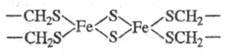 Ферредоксины могут содержать би-(см. ф-лу), три- и тетраядерные кластеры. В биядерном кластере ферредоксина из Spirulina platensis расстояние между атомами Fe составляет 0,272 нм. В окисленной форме кластер содержит оба атома Fe(III) примерно в тетраэдрич. окружении. Структура в целом диамагнитна, т.к. между атомами Fe, находящимися в высокоспиновом состоянии, имеется антиферромагн. взаимод.; суммарный спин S = 0 при низких т-рах. При комнатной т-pe возможно заселение возбужденных уровней (S=1), что обнаруживается как парамагнитный сдвиг сигналов ПМР протонов, находящихся вблизи металлокластера. При восстановлении одного атома Fe S= 1/2, что обусловливает спектр ЭПР.