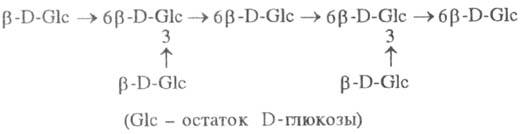 Молекулы олигосахаринов представляют собой короткие, обычно семи-, восьмичленные разветвленные олигосахарид-ные цепочки из простых моносахаридных звеньев. Напр., олигосахарин, образующийся из клеточных стенок патогенного гриба Phytophthora megasperma при заражении им сои, представляет собой разветвленный гептаглюкозид: