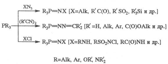 Иногда для получения фосфазосоединений используют соед. 4-координац. P - алкилиденфосфораны, фосфиноксиды и фосфинсульфи-ды, напр.: