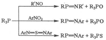 Большинство фосфазосоединений активно взаимод. с карбонильными и тиокарбонильными соед., напр.:
