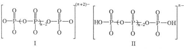 Pm). В воде раств. лишь полифосфаты щелочных металлов. В водных р-рах фосфаты Pn и Рm нестабильны и разлагаются до ортофосфатов, р-ция ускоряется при нагр., понижении рН, добавлении ферментов и комплексообразователей. Полифосфаты - типичные полиэлектролиты, с ионами металлов образуют раств. в воде комплексы, фосфаты с длинными цепями коагулируют белок.