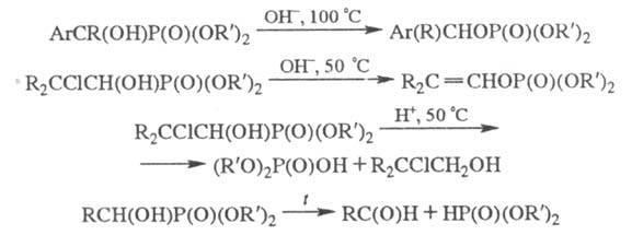 гидроксиалкил-фосфонаты в зависимости от условий проведения р-ции и строения соед. претерпевают разл. превращения: