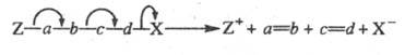 | Z (катионоидные уходящце группы) | a— b, c—d (центральные фрагменты) | X (анионоидные уходящие группы) | ||