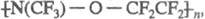 Гетероцепные фторкаучуки, содержащие в цепи макромолекулы гетероатомы (P, О, N), по нек-рым эксплуатац. св-вам во многом превосходят карбоцепные. Однако вследствие сложности синтеза они не получили широкого пром. применения. Наиб. изучены перфторполиэфирные каучуки на основе дикарбоновых к-т типа НООССбН4(СF2)2СбH4СООН, нитро-зоперфторкаучуки 5040-33.jpg фторсилоксано-вые каучуки (см. Кремнийорганические каучуки), фторалко-ксифосфазеновые каучуки ф-лы I и перфторалкилентриази-новые каучуки ф-лы II (RF - перфторуглеродный радикал)