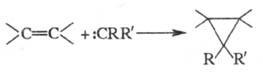 Важнейший пример хелетропной реакции - присоединение синглетных кар-бенов по двойной связи с образованием циклопропанов; р-ция протекает цис-стереоспецифично: