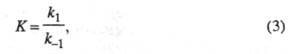 где k1 и k-1 - константы скорости прямой и обратной р-ций соотв. Кинетич. определение подчеркивает динамич. характер химического равновесия: при его достижении р-ции в системе не прекращаются. Если в системе происходят несколько связанных между собой хим. р-ций, кинетич. определение химического равновесия (3) выполняется, когда справедлив детального равновесия принцип, т. е. для каждой из р-ций достигается равенство скоростей в прямом и обратном направлениях. Напр., если в системе протекает циклич. превращение