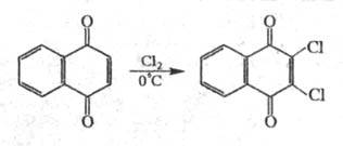 Взаимод. с С12 при низкой т-ре протекает с сохранением хиноидной структуры, напр.: