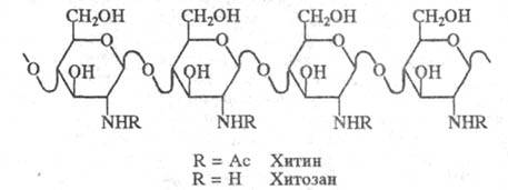 4-связями между ними (см. ф-лу). Деацетилированные (частично или полностью) полимеры, встречающиеся в природе или получаемые хим. обработкой хитина, носят назв. хитозанов.