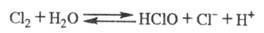 Хлор хорошо раств. в неполярных жидкостях, хуже - в воде. Р-римость, % по массе: в СС14 - 16,4 (0 °С), 8,46 (25 °С), бензоле - 24,7 (10 °С), 18,5 (20 °С), 14,7 (30 °С), воде - 1,44 (О °С), 1,07 (6 °С), 0,828 (15 oC), 0,711 (20 °С), 0,626 (25 °С), 0,449 (40 °С), 0,323 (60 °С). В конц. р-рах NaCl р-римость С12 в неск. раз ниже, чем в воде. В водном р-ре хлора устанавливается равновесие: