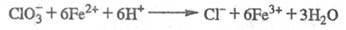 Взаимод. солей Fе(II) в среде 5М Н3РО4 или H2SO4 с хлорат-ионом идет при 70-80 °С в присут. OsO4 и используется для количеств. определения хлоратов: