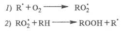 за доли секунды достигают своего стационарного значения, определяемого ур-нием (2), a ROOH накапливается в системе и служит инициатором: