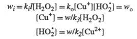 когда можно пренебречь возможным вкладом скоростей инициирования и обрыва цепи в общую скорость р-ции, т. е. в тех случаях, когда общая скорость w равна скорости wпр р-ций ЦПЦ (все они имеют одинаковую скорость) и wi = w0. Стационарную концентрацию переносчиков цепи, участвующих в р-циях обрыва, определяют из кинетич. ур-ния wi = w0 и затем рассчитывают w. Так, для вышеупомянутого разложения Н2О2 в присуг. ионов Сu2+ при освещении светом интенсивности I
