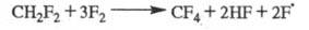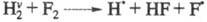 М + 2Х), где X - С1 или F. Большая разница энергий связи F — F (159 кДж/моль) и Н — F (565 кДж/моль) определяет еще один канал образования атомарного F:
