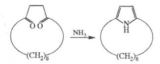 Второй путь синтеза - построение структуры циклофанов на основе алициклич. или гетероциклич. систем. Напр., [6]метациклофан м. б. получен из конденсир. алициклич. системы, включающей 5- и 8-членные циклы, а [8]пирролофан - из циклододекан-1,4-диона: