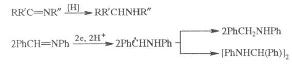 Восстанавливаются шиффовы основания до соответствующих аминов, при электрохим. восстановлении могут образовываться диамины: