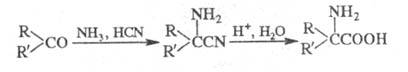 ШТРЕККЕРА РЕАКЦИИ, 1) получение a-аминокислот из альдегидов или кетонов действием NH3 и HCN с послед. гидролизом образующихся