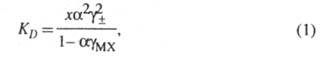 M+ + Х- характеризуется константой электролитической диссоциации KD, связанной, согласно действующих масс закону, со степенью диссоциации