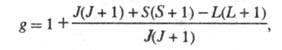 где L, S, J - квантовые числа соотв. орбитального, спинового и полного моментов кол-ва движения. В случае чисто спинового магнетизма L= 0 (ситуация своб. электрона) g = 2,0023. Отклонение от этой величины свидетельствует о примеси орбитального магнетизма (спин-орбитальное взаимодействие), приводящего к изменению величины резонансного поля. Ценную информацию величина g-фактора дает при анализе спектров ЭПР парамагн. ионов с сильным спин-орбитальным взаимодействием, т. к. она весьма чувствительна к лигандному окружению иона, к-poe формирует кристаллич. поле (см. Кристаллического поля теория). Для ионов g-фактор определяется в виде
