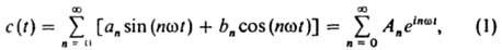 где аn, bn - коэффициенты разложения ф-ции c(t) в рад (амплитуды отдельных гармонич. компонент), An - комплексные амплитуды, w - частота колебаний (i - мнимая единица). В общем случае амплитуды и частоты колебаний могут изменяться во времени (колебания затухающие, нарастающие, модулированные). Колебания концентраций промежут. соед. могут быть непериодическими или иметь непрерывный спектр. Колебания концентраций промежут. соед. - относительно редкое явление, наблюдаемое в ходе нек-рых сложных р-ций. Элементарные хим. р-ции являются релаксац. процессами, обеспечивающими монотонное приближение реагирующей системы к состоянию термодинамич. равновесия. Для возникновения колебаний в ходе гомог. изотермич. р-ции необходимо наличие промежут. соед. и взаимодействие между ними. В открытых системах существуют стационарные состояния, в к-рых концентрация c(i) i-го промежут. соед. не зависит от времени (сi=c0i). При небольших отклонениях системы от стационарного состояния изменение сi описывается суммой экспонент с комплексными показателями: