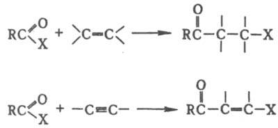 КОНДАКОВА РЕАКЦИЯ, присоединение галогенангидридов карбоновых к-т к олефинам и ацетиленам с образованием соотв. (b-галогенкетонов и b-галогенвинилкетонов: